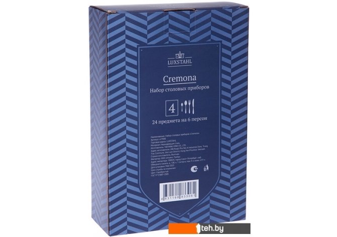 | Информация | ? Набор столовых приборов Luxstahl Cremona кт7000 (24пр) идеально подойдут для всех стилей посуды и создадут гармоничную атмосферу на Вашем столе. Используется нержавеющая сталь марки AISI 304 (содержит минимум 18% хрома и 10% никеля) и AISI 430 (содержит минимум 18% хрома) для исключительной коррозионной стойкости, блеска и гигиенических качеств. Зеркальная полировка каждого миллиметра делает их простыми в уходе благодаря инновационным технологиям. Серия отличается элегантностью классической формы и сдержанным блеском полировки, гармонично сочетается с любой посудой. Классическая каплевидная форма ручки, длинные и острые зубцы вилок, гармоничные глубокие рабочие части ложек, острые пилочки ножей крайне комфортны в использовании. Неприхотливы в уходе при соблюдении нескольких простых правил. При соблюдении этих простых правил столовые приборы будут долго радовать Вас своим блеском и надолго сохранят свой внешний вид. |