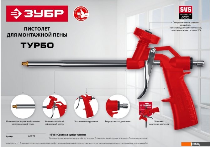 | Информация | Надежный нейлоновый, химически стойкий корпус. Игольчатый и шариковый клапан из нержавеющей стали. Эргономичная рукоятка. Ствол и игольчатый клапан из нержавеющей стали увеличивают ресурс инструмента. Применяется для нанесения полиуретановой пены, упакованной в баллоны. |