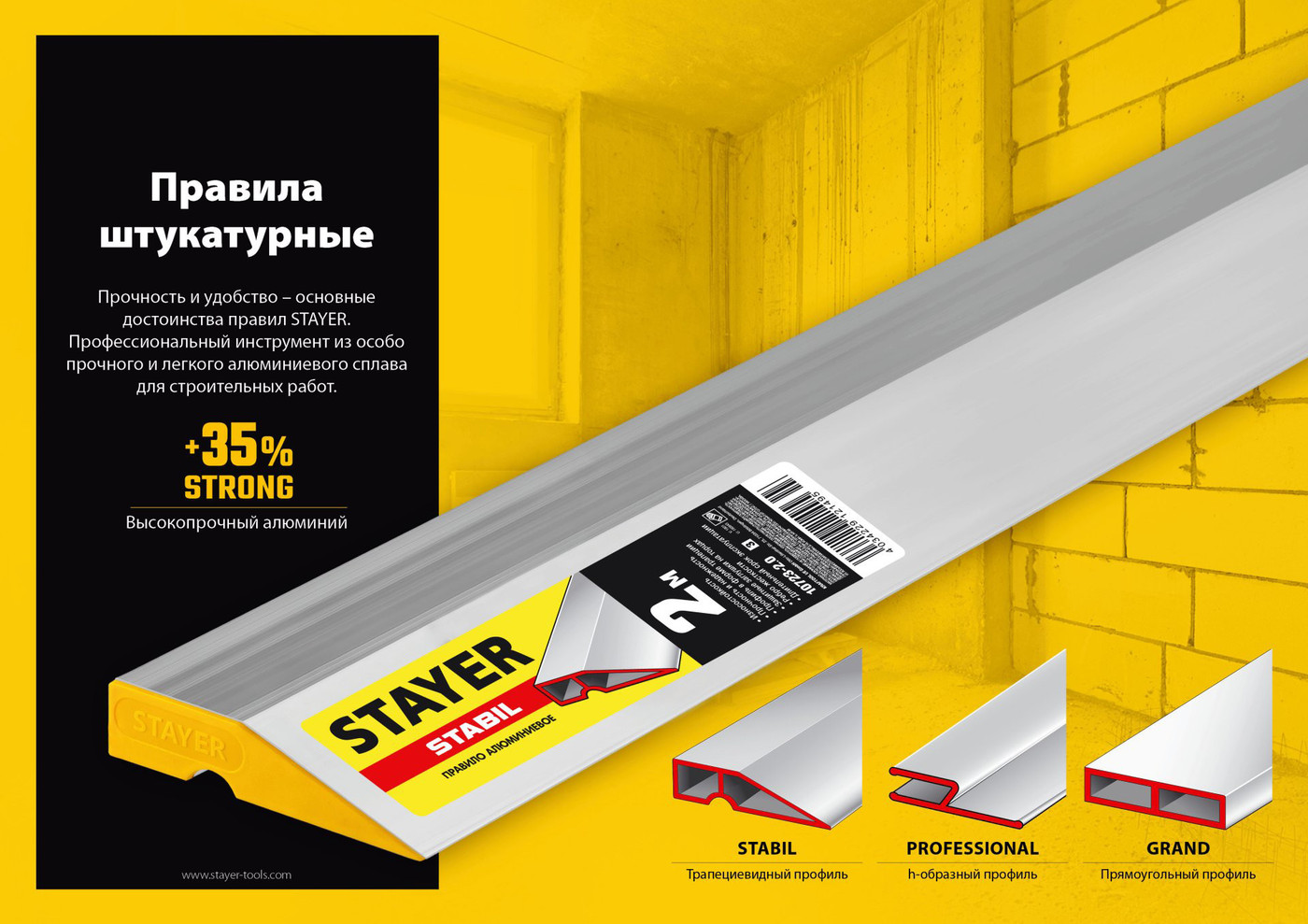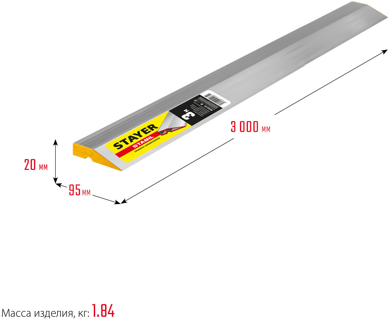 Информация | Износостойкость, Прочность и надежность, Профиль в форме трапеции, ребро жесткости, С двумя пластиковыми заглушками, Длительный срок эксплуатации. Предназначается для выравнивания больших площадей горизонтальных и вертикальных поверхностей при выполнении отделочных работ. |