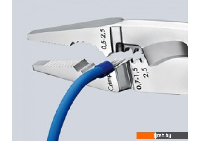 | Информация | - Mногофункциональные клещи для электромонтажных работ; для захвата плоского и круглого материала, гибки, удаления заусенцев, резки кабеля, удаления изоляции и опрессовки контактных гильз;- 6 функций в одних клещах;- гладкие захватные губки для захвата отдельных жил без их повреждения; профилированные захватные губки и выемка для захвата плоского и круглого материала;- характерная наружная кромка на губке для обработки штепсельных розеток для скрытой проводки и удаления заусенцев на отверстиях для ввода кабеля;- отверстия для удаления изоляции с проводов 0,75 – 1,5 мм? и 2,5 мм?;- опрессовочное гнездо для контактных гильз 0,5 – 2,5 мм?;- ножницы с прецизионными лезвиями (индуктивной закалки) для резки медного и алюминиевого кабеля до 5 x 2,5 мм? / O 15 мм;- захватывают без полного раскрытия клещей (рациональный механизм удержания в закрытом состоянии у версии с раскрывающей пружиной). Режущие кромки остаются сомкнутыми и защищенными;- узкая конструкция облегчает доступ к детали;- винтовой шарнир: точный ход без зазоров. |