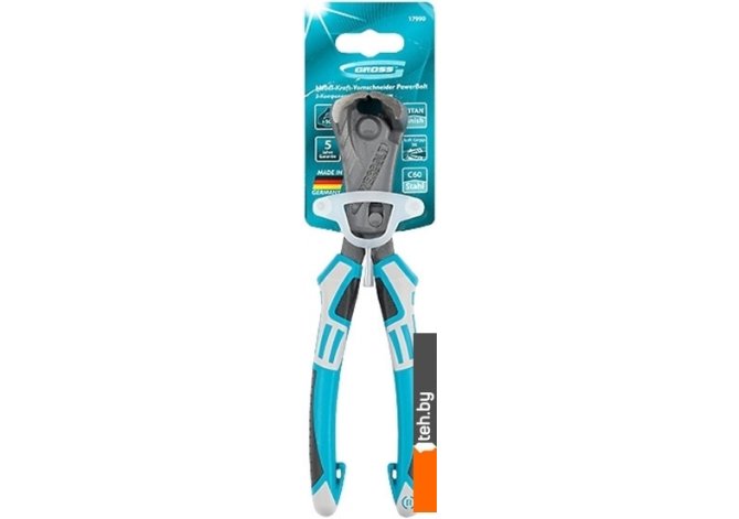 | Информация | Торцевые клещи GROSS 200 мм 17990 подходят для слесарных и монтажных работ. Их рабочие части выполнены из конструкционной стали С60 и имеют специальное покрытие Titan finish, защищающее их от коррозии. Внешние части инструмента оснащены ребрами жесткости, благодаря которым конструкция становится более прочной и надежной. Рез эффективнее на 50% за счет смещения шарнира к режущим кромкам и оптимальному соотношению рычагов. |