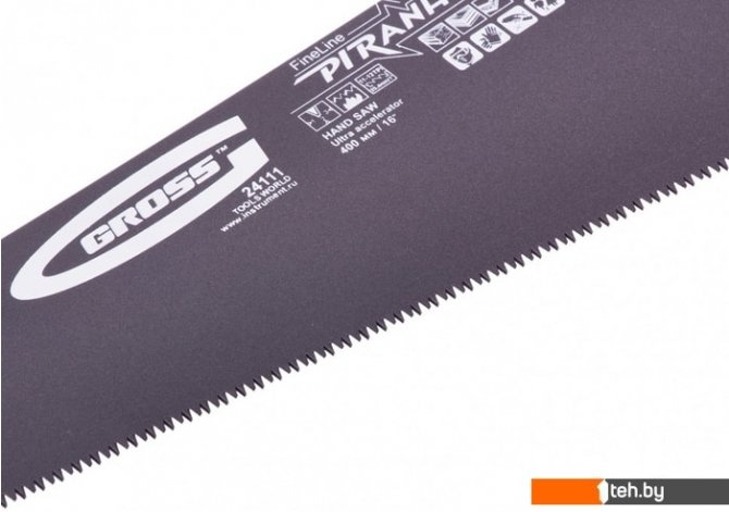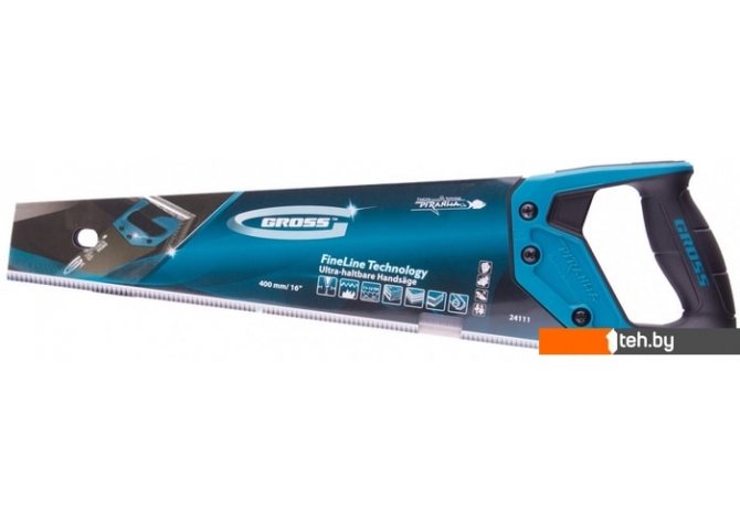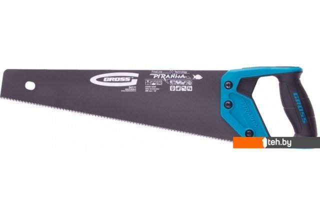 | Информация | Ножовка по дереву "Piranha", 400 мм, 11-12 TPI, зуб-3D, каленый зуб, тефлоновое покрытие полотна, двухкомпонентная рукоятка Gross |