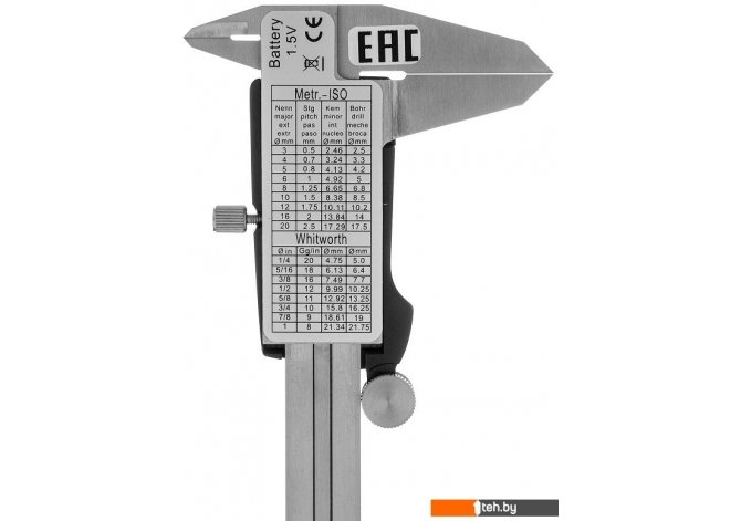 | Информация | Электронный штангенциркуль 31613 со шкалой 150 мм предназначен для определения внутренних и наружных размеров различных предметов, а также глубин отверстий и канавок. Цифровой инструмент позволяет проводить точные замеры, т.к. его погрешность составляет ±0,02 мм при измерении размеров до 100 мм, и ±0,03 мм — свыше 100 мм. Результаты отображаются на жидкокристаллическом дисплее, поэтому считывание показаний происходит легко и быстро. Штангенциркуль пригодится на производстве, в слесарной или столярной мастерской, а также дома или в гараже.ПреимуществаШтангенциркуль из инструментальной нержавеющей стали прочен и устойчив к коррозии, поэтому прослужит долго._x000D_ Конструкцией предусмотрен глубиномер, расширяющий возможности применения измерительного инструмента._x000D_ Батарею типа SR44 1,5 В, от которой питается инструмент, легко заменить, и штангенциркуль с глубиномером снова будет готов к работе._x000D_ Надежно закрывающийся пластмассовый футляр с мягкой подложкой предотвращает поломку инструмента в случае падения или удара. |