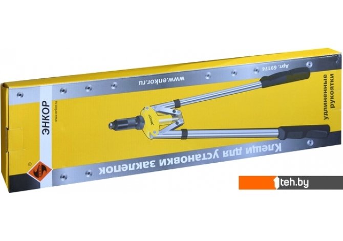 | Информация | Устанавливают заклепки из алюминия размером: 3.2, 4.0, 4.8, 6.0, 6.4 мм. Удлиненные рукоятки для снижения прикладываемых при работе усилий. |