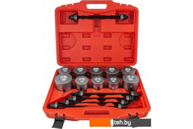 | Информация | Инструмент универсальный для замены сайлентблоков в наборе, 44-90 мм из 27 предметов. Набор предназначен для производства работ по замене сайлентблоков при обслуживании подвески автомобилей. Широкий диапазон размеров оправок, входящих в комплект набора, позволяет обслуживать максимально возможный спектр транспортных средств. |