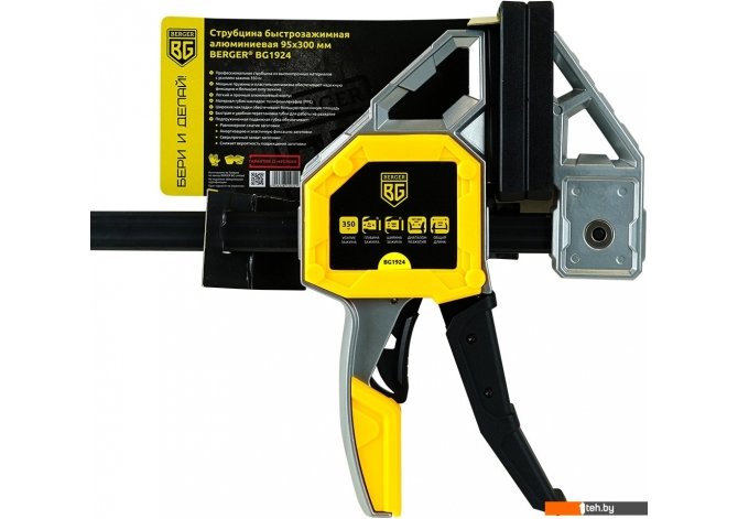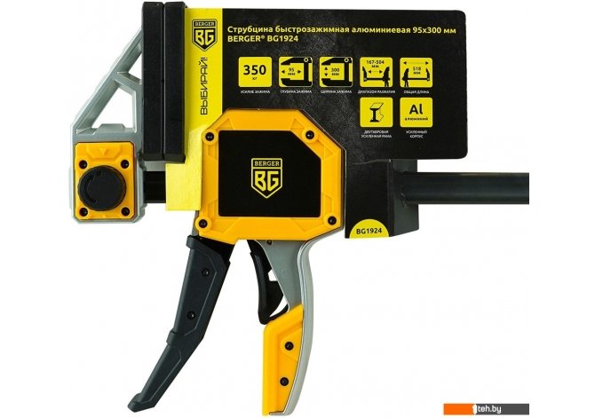 Фотографии, описание и технические характеристики модели Berger Быстрозажимная 95x300мм, зажим до 350кг BG1924 взяты из открытых источников, официального сайта производителя или представительства Berger в Республике Беларусь.
