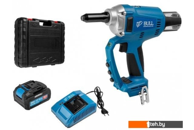| Информация | Данный аккумуляторный заклёпочный пистолет предназначен для установки алюминиевых, стальных (в т.ч. нерж.) и медных вытяжных заклепок диаметром 2.4-4.8 мм. Высокая производительность и энергоэффективность модели обеспечивается за счет наличия бесщеточного двигателя. Прорезиненная рукоятка, а также малый вес добавят дополнительного комфорта при работе. Данная модель обладает подсветкой рабочей зоны (кнопка включения расположена на корпусе изделия). При работе отработанные хвостовики заклепок проваливаются внутрь специального контейнера-ключа, расположенного на оборотной стороне инструмента. Также данный контейнер выступает в качестве специального ключа, при помощи которого можно менять сменные насадки (2.4, 3.2, 4.0, 4.8 мм), три из которых фиксируются на рукоятке изделия. Для достижения комфорта в переноске и хранения изделия в модели присутствуют специальная скоба для подвешивания, а также съемный крюк (может устанавливаться с двух сторон). В данной комплектации присутсвует аккумулятор и зу.Тех. хар-ки: Напряжение аккумулятора: 18 В; Тип аккумулятора: li-ion; Тип двигателя: бесщеточный; Тип заклепок: вытяжные; Ход штока (рабочий ход): 25 мм; Размеры заклепок: 2.4, 3.2, 4.0, 4.8; Усилие: 10000 Н; Масса: 1,8 кг; Подсветка рабочей зоны;Комплект поставки: Заклепочный пистолет; Инструкция; 4 переходника под заклепки диаметра 2.4 мм, 3.2 мм, 4.0 мм, 4.8 мм; Съемный крюк; Аккумулятор BULL AK 4004 18.0 В, 4.0 А*ч, Li-Ion - 1 шт.; Зарядное устройство BULL LD 4004 - 1 шт.; |