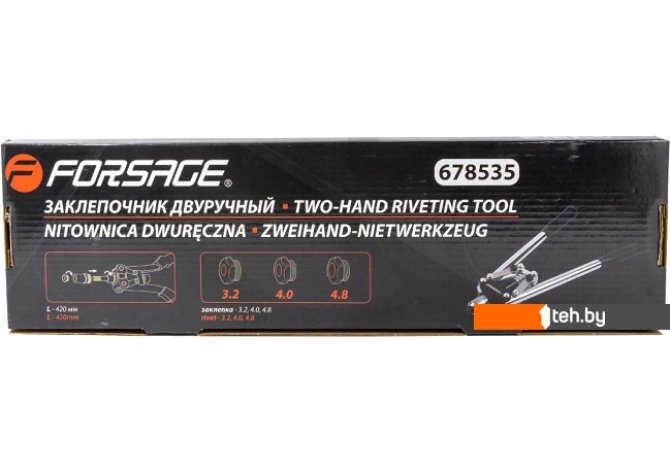 Информация | Заклепочник двуручный, L-420 мм, заклепки: 3.2, 4.0, 4.8 мм. |