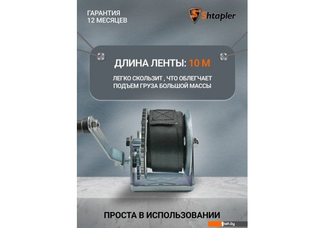 | Информация | Ручная барабанная лебедка с шестеренчатой передачей применяется для перемещения грузов при монтажных и демонтажных работах в строительном и транспортном секторе, производственных цехах и складских помещениях. В качестве тягового элемента используется лента, которая легко скользит, без проблем разматывается и наматывается на барабан, что облегчает подъем груза большой массы. Помимо этого лебедки с текстильной лентой создают меньше шума при использовании и подходят для эксплуатации в условиях повышенной влажности._x000D_ _x000D_ Крюк с защелкой для безопасного использования._x000D_ Тормозной механизм._x000D_ Эргономичная рукоять для удобного хвата. |
