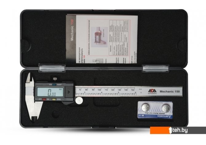 | Информация | Цифровой штангенциркуль ADA Mechanic 150 используется для проведения как наружных, так и внутренних измерений различных изделий или заготовок. Измерения производятся с высокой точностью ±0.03 мм. Результаты отображаются на ЖК дисплее с точностью до тысячных. Нажатием кнопки можно перевести миллиметры в дюймы. Результаты измерения отражаются на ЖК экране крупными цифрами. В любом положении подвижной рамки можно обнулить значение и начать измерения от этого положения. Например при определении разницы между диаметрами двух деталей. Включение штангенциркуля происходит автоматически при сдвиге рамки. Подвижная рамка имеет специальное колесико для точной установки и винтовой фиксатор. Корпус дисплея ADA Mechanic 150 изготовлен из пластика, остальная часть прибора — нержавеющая сталь. Длина измерения - 0-150 мм Разрешение - 0.01мм Точность ±0.03 мм Питание 1х SR44 Время работы - 0.5 г |