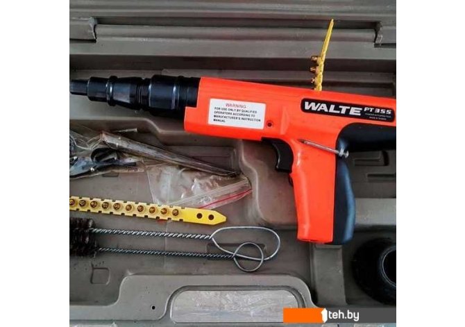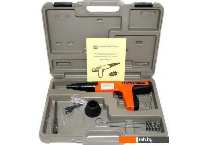 | Информация | Монтажный пороховой пистолет WALTE в десятки раз сокращает постановку крепежа в бетон, сталь, кирпич, по сравнению с засверливанием. Монтажный пистолет обладает высокой автономностью. Кроме этого, пистолет WALTE PT-355 - это эффективный и безопасный ручной инструмент применяемый в общестроительных, отделочных и электромонтажных работах. |