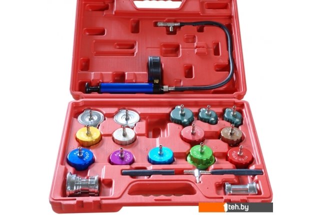 | Информация | Состав набора: Насос с манометром (0-35 psi); Термометр; 4шт хромированных стальных адаптера; 8шт адаптеров анодированного алюминия; Для автомобилей: Ниссан, Мицубиси, Мазда, Субару, Тойота, Хонда, Форд GM, Крайслер, Фольксваген, Ауди, Вольво, СААБ, Мерседес, БМВ, Рено, Фиат и другие, в том числе грузовых автомобилей. |
