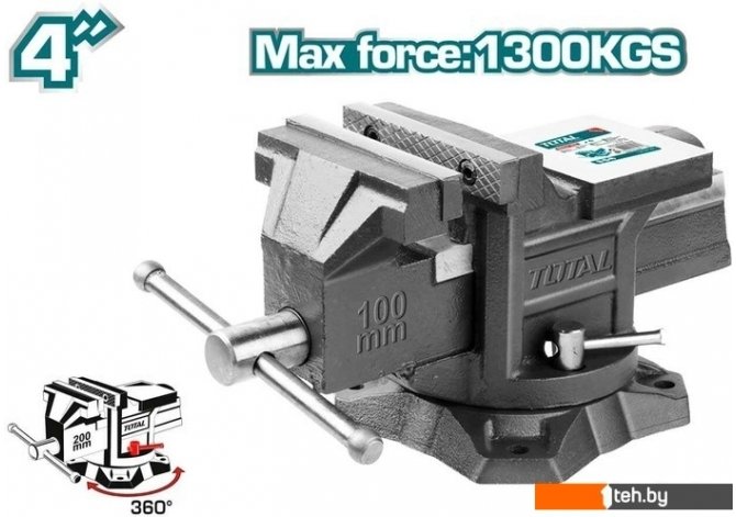 | Информация | Тиски слесарные поворотные 4 " 100 мм, с наковальней TOTAL THT6146 |