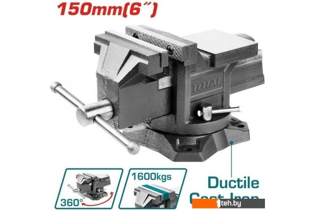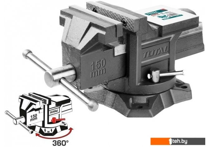 | Информация | Тиски слесарные поворотные 5 150 мм, с наковальней TOTAL THT6166 |
