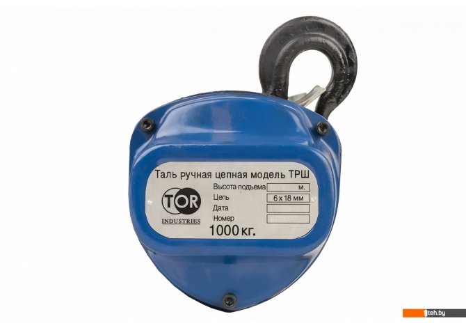 Информация | Таль ручная шестеренная предназначена для подъема удержания в поднятом положении и опускания груза при ремонтных, монтажных и строительных работах. Устройство снабжено стопором, что позволяет остановить груз на нужной высоте и избежать его падения._x000D_ _x000D_ Усилие на руке: 22 кг. |