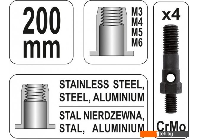 | Информация | Ручной заклепочник для заклепочных гаек М3-М6 фирмы YATO YT-36140. Заклепочник предназначен для соединения материалов с помощью заклепочных гаек. Соединяет материалы с помощью втулки с внутренней резьбой. Это позволяет прикручивать дополнительные элементы саморезами по металлу или саморезами. Головки в размерах: М3, М4, М5, М6. Изготовлен из прочной хромомолибденовой инструментальной стали CrMo. Ручки покрыты нескользящей резиновой подкладкой. |