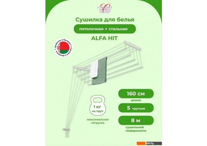 Фотографии, описание и технические характеристики модели сушилки для белья Comfort Alumin Alfa Hit Стальная 160 см взяты из открытых источников, официального сайта производителя или представительства Comfort Alumin в Республике Беларусь.