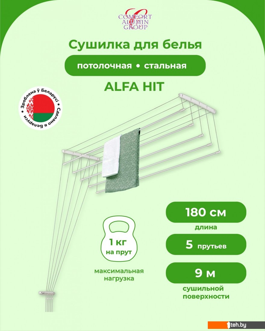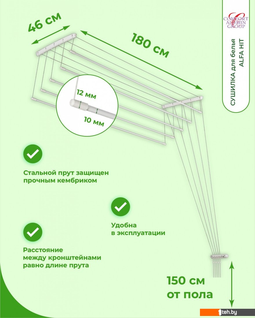 Фотографии, описание и технические характеристики модели сушилки для белья Comfort Alumin Alfa Hit Стальная 180 см взяты из открытых источников, официального сайта производителя или представительства Comfort Alumin в Республике Беларусь.