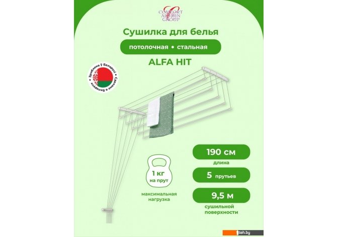 Фотографии, описание и технические характеристики модели сушилки для белья Comfort Alumin Alfa Hit Стальная 190 см взяты из открытых источников, официального сайта производителя или представительства Comfort Alumin в Республике Беларусь.