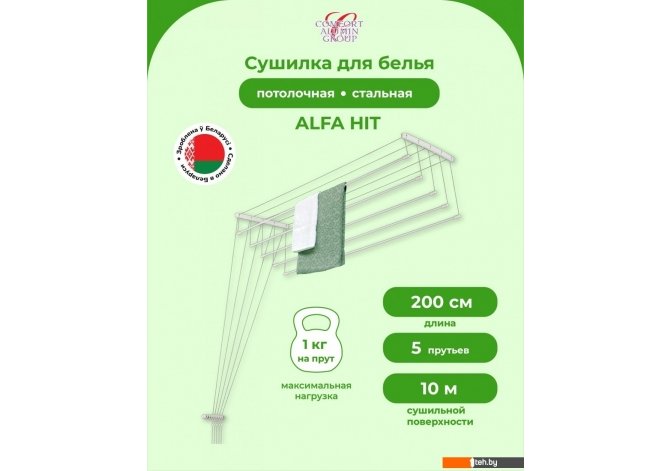 Фотографии, описание и технические характеристики модели сушилки для белья Comfort Alumin Alfa Hit Стальная 200 см взяты из открытых источников, официального сайта производителя или представительства Comfort Alumin в Республике Беларусь.
