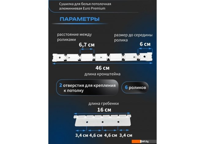 Если хотите купить сушилка для белья Comfort Alumin Euro Premium потолочная 6 прутьев 220 см (алюминий/белый) то следует уточнить все параметры и габариты модели перед покупкой. Представленые характеристики на сайте 1teh.by могут отличаться от действительных или указанных производителем. Описание, фото товара и технические характеристики представлены для справки.