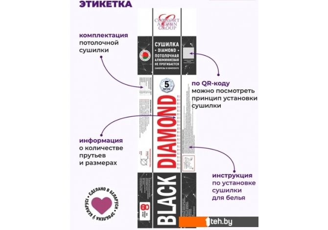 Фотографии, описание и технические характеристики модели сушилки для белья Comfort Alumin Group Потолочная 5 прутьев Black Diamond 120 см (алюминий) взяты из открытых источников, официального сайта производителя или представительства Comfort Alumin в Республике Беларусь.