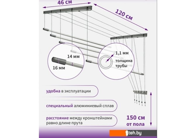 Фотографии, описание и технические характеристики модели сушилки для белья Comfort Alumin Group Потолочная 5 прутьев Silver Star 120 см (алюминий) взяты из открытых источников, официального сайта производителя или представительства Comfort Alumin в Республике Беларусь.