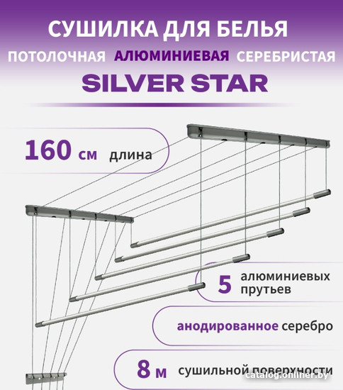 Фотографии, описание и технические характеристики модели сушилки для белья Comfort Alumin Group Потолочная 5 прутьев Silver Star 160 см (алюминий) взяты из открытых источников, официального сайта производителя или представительства Comfort Alumin в Республике Беларусь.