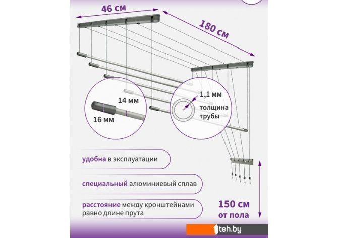 Если хотите купить сушилка для белья Comfort Alumin Group Потолочная 5 прутьев Silver Star 180 см (алюминий) то следует уточнить все параметры и габариты модели перед покупкой. Представленые характеристики на сайте 1teh.by могут отличаться от действительных или указанных производителем. Описание, фото товара и технические характеристики представлены для справки.