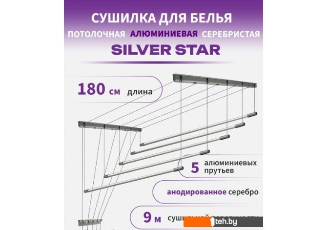 Фотографии, описание и технические характеристики модели сушилки для белья Comfort Alumin Group Потолочная 5 прутьев Silver Star 180 см (алюминий) взяты из открытых источников, официального сайта производителя или представительства Comfort Alumin в Республике Беларусь.