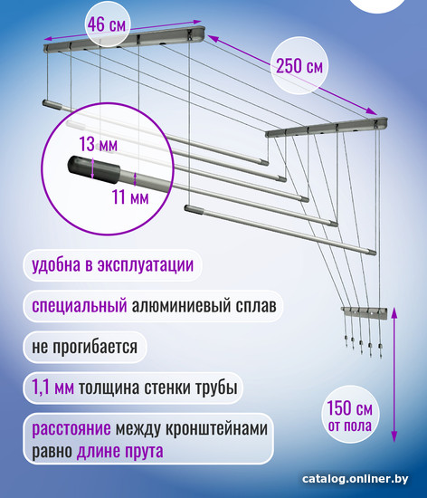 Фотографии, описание и технические характеристики модели сушилки для белья Comfort Alumin Group Потолочная 5 прутьев Silver Style 140 см (алюминий) взяты из открытых источников, официального сайта производителя или представительства Comfort Alumin в Республике Беларусь.