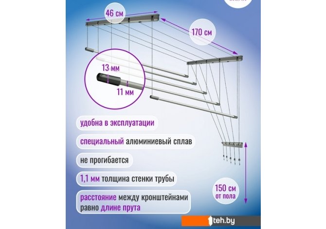 Фотографии, описание и технические характеристики модели сушилки для белья Comfort Alumin Group Потолочная 5 прутьев Silver Style 170 см (алюминий) взяты из открытых источников, официального сайта производителя или представительства Comfort Alumin в Республике Беларусь.