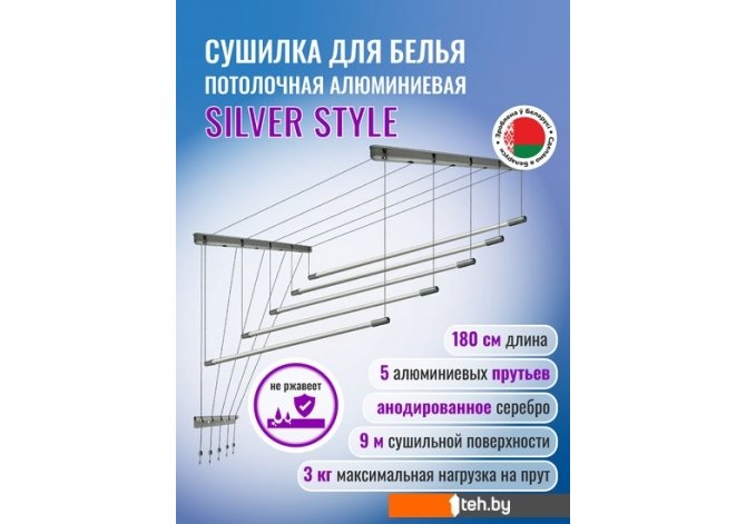 Фотографии, описание и технические характеристики модели сушилки для белья Comfort Alumin Group Потолочная 5 прутьев Silver Style 180 см (алюминий) взяты из открытых источников, официального сайта производителя или представительства Comfort Alumin в Республике Беларусь.