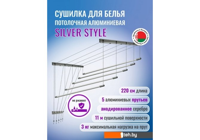Фотографии, описание и технические характеристики модели сушилки для белья Comfort Alumin Group Потолочная 5 прутьев Silver Style 220 см (алюминий) взяты из открытых источников, официального сайта производителя или представительства Comfort Alumin в Республике Беларусь.