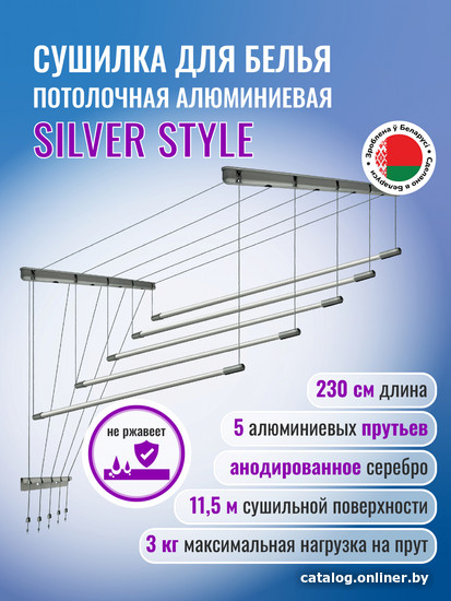 Фотографии, описание и технические характеристики модели сушилки для белья Comfort Alumin Group Потолочная 5 прутьев Silver Style 230 см (алюминий) взяты из открытых источников, официального сайта производителя или представительства Comfort Alumin в Республике Беларусь.
