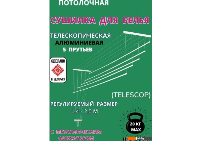 Если хотите купить сушилка для белья Comfort Alumin Group Потолочная телескопическая 5 прутьев 120-200см (алюминий) то следует уточнить все параметры и габариты модели перед покупкой. Представленые характеристики на сайте 1teh.by могут отличаться от действительных или указанных производителем. Описание, фото товара и технические характеристики представлены для справки.