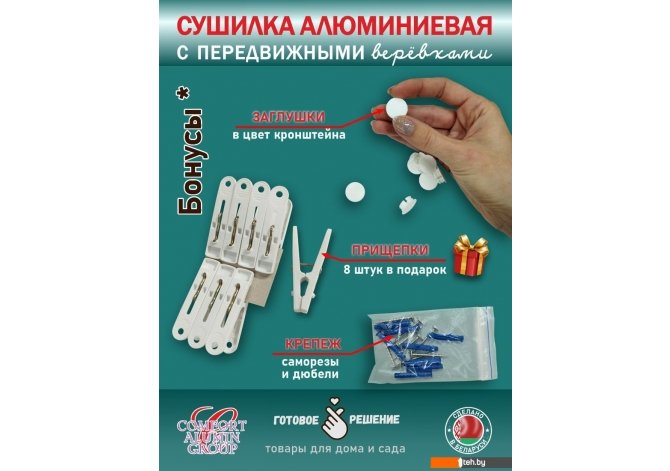 Если хотите купить сушилка для белья Comfort Alumin Lux Настенная 5 нитей 0.5м (алюминий/белый) то следует уточнить все параметры и габариты модели перед покупкой. Представленые характеристики на сайте 1teh.by могут отличаться от действительных или указанных производителем. Описание, фото товара и технические характеристики представлены для справки.