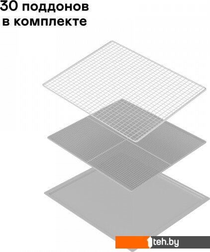 Комплектация | уровень для овощей и фруктов 10 шт.; поддон для приготовления пастилы 10 шт.; сетка для сушки трав 10 шт.; руководство пользователя; краткая инструкция пользователя; гарантийный талон |