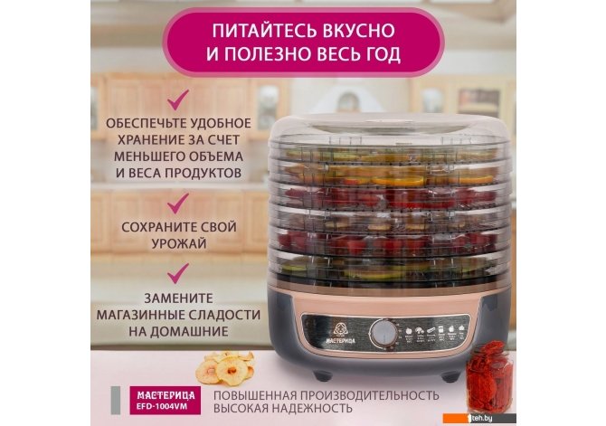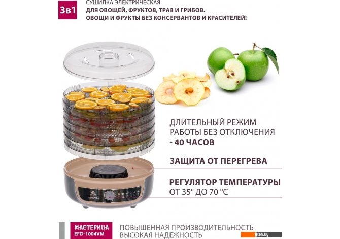 Фотографии, описание и технические характеристики модели сушилоки Мастерица EFD-1004VM взяты из открытых источников, официального сайта производителя или представительства Мастерица в Республике Беларусь.