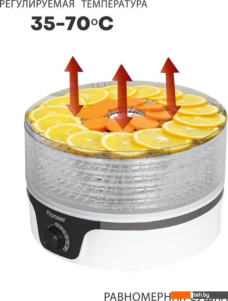 Информация | ??Текст описания составлен при помощи искусственного интеллекта. - Сушилка для овощей и фруктов Pioneer FD105 — это идеальный помощник для тех, кто хочет сохранить свежесть и полезные свойства своих любимых продуктов. Благодаря мощному нагревательному элементу и конвективной системе сушки, вы сможете легко и быстро высушить фрукты, овощи, травы и даже грибы. - В комплекте с сушилкой вы получите 5 прозрачных поддонов с крышкой, которые обеспечивают удобство в использовании и позволяют контролировать процесс сушки. Механическое управление и регулируемый термостат позволяют настроить оптимальную температуру сушки в диапазоне от 35 до 70 °C, что делает процесс максимально эффективным. - Корпус сушилки выполнен из прочного пластика, что обеспечивает долговечность и легкость в уходе. Расстояние между уровнями в 25 мм позволяет сушить даже крупные кусочки продуктов, не беспокоясь о том, что они будут мешать друг другу. - Не забывайте следить за процессом сушки, чтобы достичь наилучших результатов и насладиться вкусом натуральных закусок! |