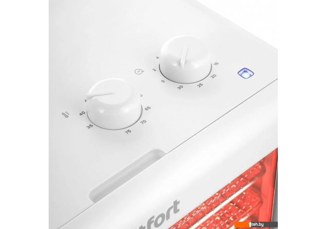 | Информация | Электрическая сушилка предназначена для сушки овощей, фруктов, ягод, грибов, корнеплодов, трав и зелени, а также мяса и рыбы, хлеба. Галогеновый нагреватель подсвечивает камеру сушилки во время работы прибора. В сушилке установлен вентилятор, обеспечивающий равномерное распределение нагретого воздуха по всему объёму камеры. Благодаря горизонтальному обдуву смешение запахов при сушке одновременно разных продуктов минимально. Прибор позволяет установить температуру сушки в диапазоне 35–75° с шагом 5°. Сушилка оснащена таймером, который позволяет установить время в диапазоне: 2–10 часов с шагом 2 часа и 10–30 часов с шагом 5 часов. В комплект сушилки входят 4 поддона из нержавеющей стали, 4 сетки и 4 поддона для пастилы. Также у сушилки есть поддон для жидкости, который устанавливается на дно камеры. |