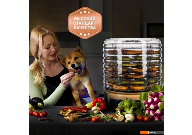 | Информация | - Сушилка для овощей и фруктов Pullman PL-2280 в стильном черно-золотистом дизайне. Она обеспечивает быструю конвективную сушку, что позволяет сохранить все полезные свойства продуктов. - В комплекте идут 2 поддона для пастилы, а также книга рецептов, чтобы вы могли экспериментировать с новыми блюдами. Нагревательный диапазон от 35 до 75 градусов позволяет выбрать оптимальную температуру для сушки. - Удобная кнопка ВКЛ/ВЫКЛ и мощность 600 Вт делают использование сушилки простым и эффективным. С 8 тонированными поддонами (из которых 2 имеют съемную сетку) вы можете легко готовить йогурт, разместив до 9 стеклянных баночек. - Сушилка предлагает 2 рабочих объема, что делает её универсальным помощником на вашей кухне. |