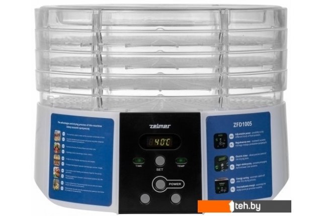 Фотографии, описание и технические характеристики модели сушилоки Zelmer ZFD1005 взяты из открытых источников, официального сайта производителя или представительства Zelmer в Республике Беларусь.
