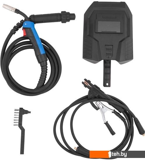 Комплект поставки | - сварочный щиток;- молоток-щетка;- горелка АК15 с евроразъемом 3м;- кабель заземления 1.2м;- 2 наконечника для сопла горелки (0.6 и 0.8 мм). |