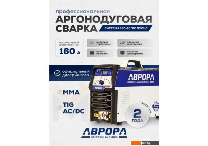 | Информация | - Аппарат АВРОРА Система 160 AC/DC ПУЛЬС — это профессиональное оборудование для импульсной сварки как постоянным (TIG DC), так и переменным током (TIG AC). Оно также подходит для классической сварки покрытым электродом (MMA). Аппарат обладает всеми необходимыми настройками, позволяющими добиться высочайшего качества сварки алюминия, стали, нержавеющей стали и прочих цветных металлов. Удобная циклограмма, знакомая каждому сварщику, позволяет отдельно настроить режим ПУЛЬС и регулировать каждую стадию сварочного процесса, что делает аппарат универсальным инструментом для решения самых разных сварочных задач. - Современный микропроцессор на базе платформы ARM обеспечивает точное управление сварочной дугой, гарантируя высокую точность настроек, контроль и стабильность процесса сварки. Благодаря этому электроника аппарата значительно увеличила скорость обратной связи, позволяя отслеживать состояние дуги с большей частотой и обеспечивать лучшее управление процессом. - Режим Холодной сварки (Cold TIG) представляет собой особый вид точечной сварки. В этом режиме сварщик устанавливает параметры сварочного тока, продолжительность работы дуги и интервал между точками, во время которого дуга полностью гасится. Ударное импульсное воздействие тока обеспечивает глубокое проплавление, а короткое время сварки предотвращает перегрев и ослабление металла. Функция ПОВТОР или режим Холодной сварки доступна на аппарате Система 160 AC/DC ПУЛЬС как при работе на постоянном (DC), так и на переменном (AC) токах. - Значение времени действия сварочного тока на аппаратах Система регулируется от 0.01 сек, что стандартно для профессиональной европейской техники, но достаточно уникально на российском рынке. На начало 2025 года большинство конкурентов предлагает гораздо более продолжительные значения времени воздействия на металл: 0.1 сек или даже 0.5 сек. Таким образом настройка режима ТОЧКА на аппаратах Система позволяет работать с гораздо более специфическими задачами и самыми тонкими материалами, которые многим аппаратам с режимом Холодной сварки недоступны. - |
