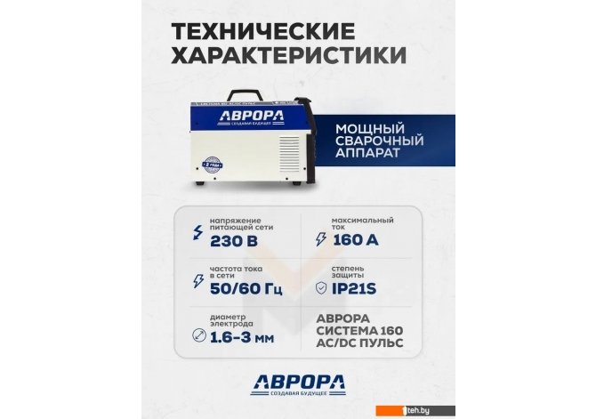 Фотографии, описание и технические характеристики модели сварочного инвертера Aurora Система 160 AC/DC Пульс взяты из открытых источников, официального сайта производителя или представительства Aurora в Республике Беларусь.