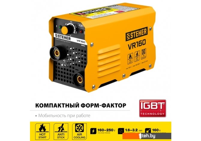 Фотографии, описание и технические характеристики модели сварочного инвертера Steher VR-160 взяты из открытых источников, официального сайта производителя или представительства Steher в Республике Беларусь.