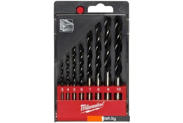 | Комплектация | Набор трехточечных спиральных сверл по дереву 3 / 4 / 5 / 6 / 7 / 8 / 9 / 10 мм |