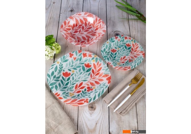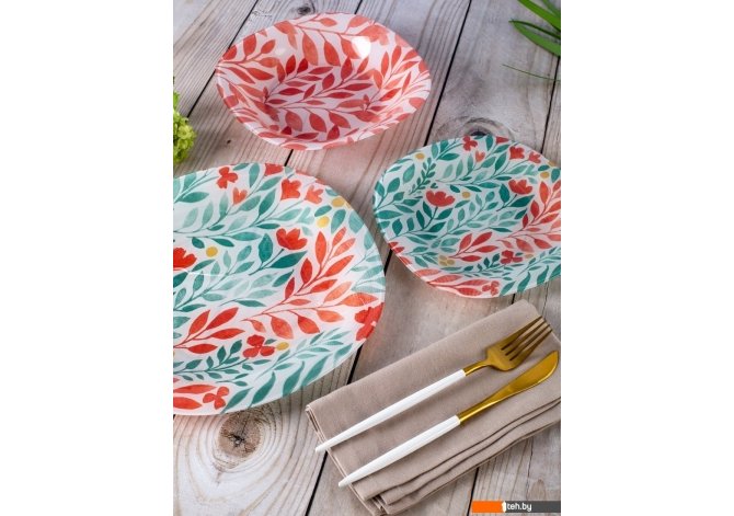 | Состав набора | тарелка закусочная (десертная) (6 шт.), тарелка столовая глубокая (6 шт.), тарелка столовая обеденная (6 шт.) |
