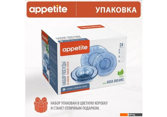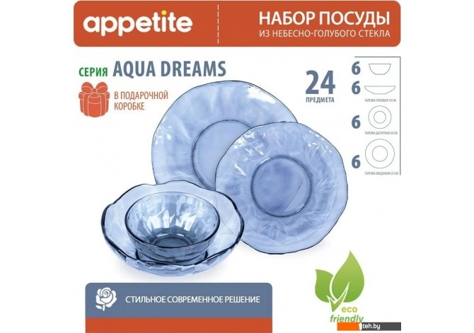 Если хотите купить Appetite Aqua Dreams 50563 (24пр) то следует уточнить все параметры и габариты модели перед покупкой. Представленые характеристики на сайте 1teh.by могут отличаться от действительных или указанных производителем. Описание, фото товара и технические характеристики представлены для справки.